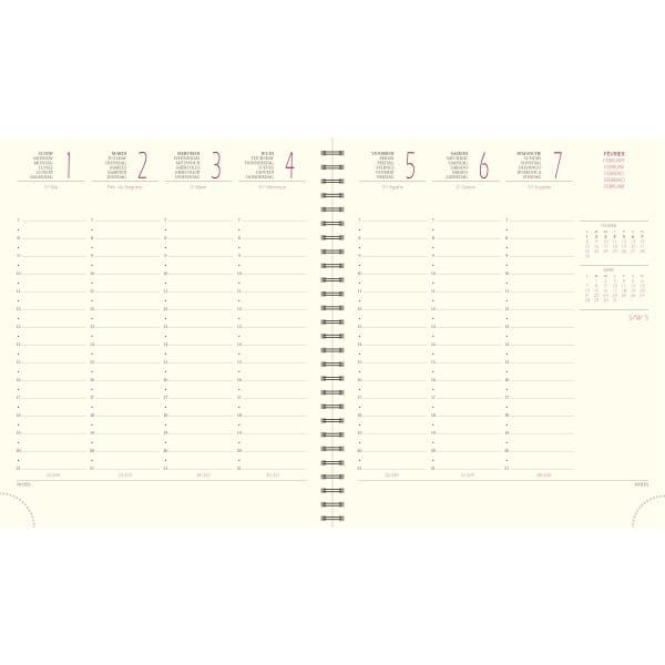 Les + : impression en bleu sur papier blanc Clairefontaine, reconnu pour sa qualité et pour permettre une écriture douce et fluide – coins détachables, pour pouvoir accéder rapidement au jour en cours.